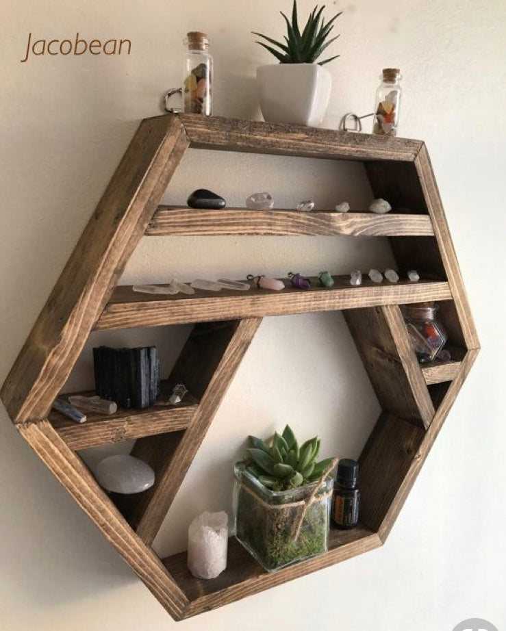 Build your choice of one of 4 styles of Rustic Geometric Wooden Shelves. An artistic but practical shelving unit, that makes a great addition to any space.